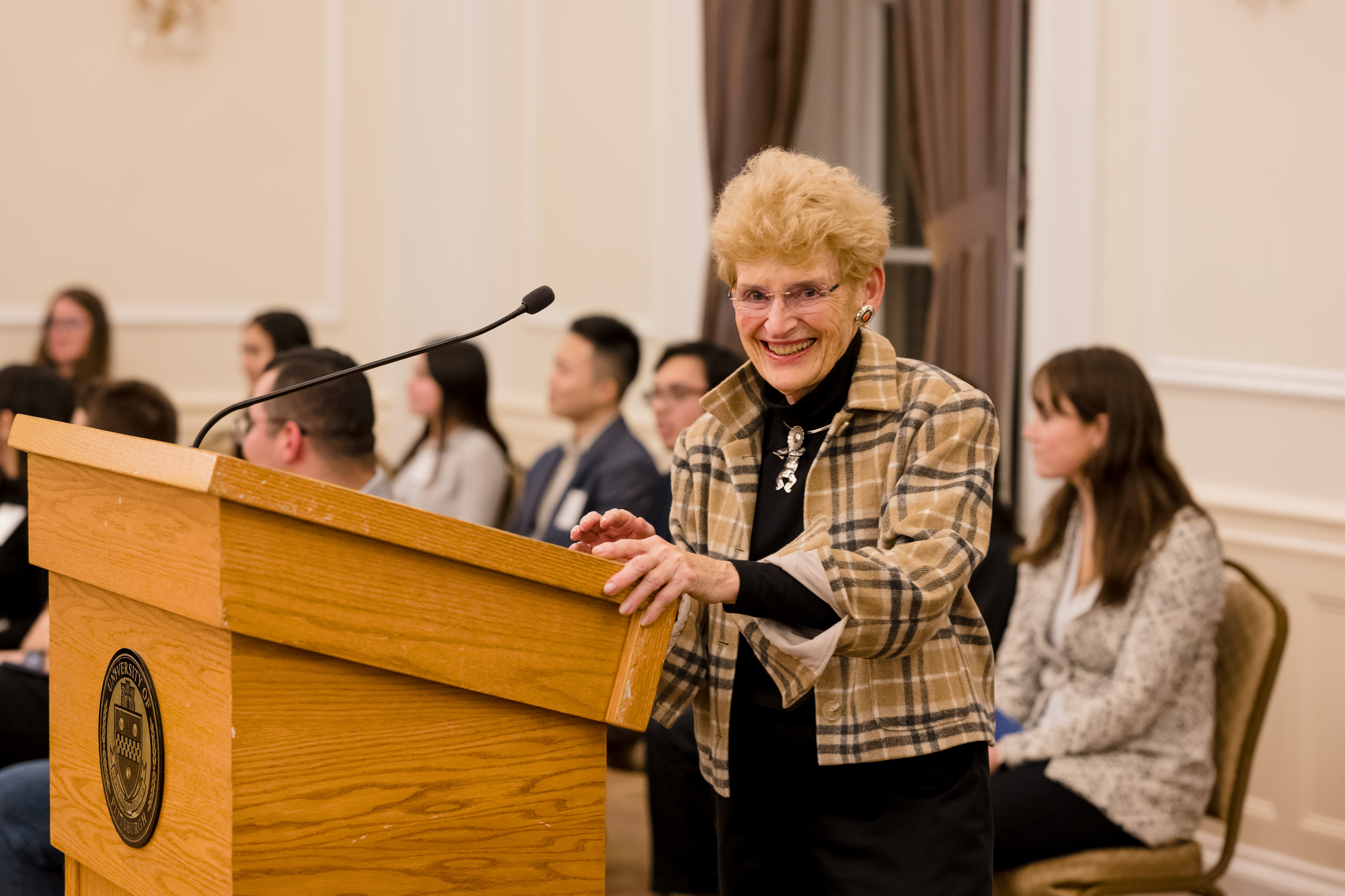 On October 30th the University of Pittsburgh hosted the Pittsburgh Chapter for our annual donor appreciation event at the University Club. After time for members, scholars, guests, and university faculty and staff to snack on hor d’oeuvres while socializing, Co- President Anne Crawford began the evening’s program. Our featured speaker was Adam Leibovich, PhD, the University of Pittsburgh’s Bettye J. and Ralph E. Bailey Dean, Kenneth P. Dietrich School of Arts and Sciences, College of General Studies. As always, the highlight of the evening was hearing from our scholars. Third year scholars Sam Nance, Carnegie Mellon University, and Giannina Ramirez, University of Pittsburgh, described their research. Additionally, each scholar shared a fun fact about themselves. The last speaker was Beth Wainwright, national president of ARCS