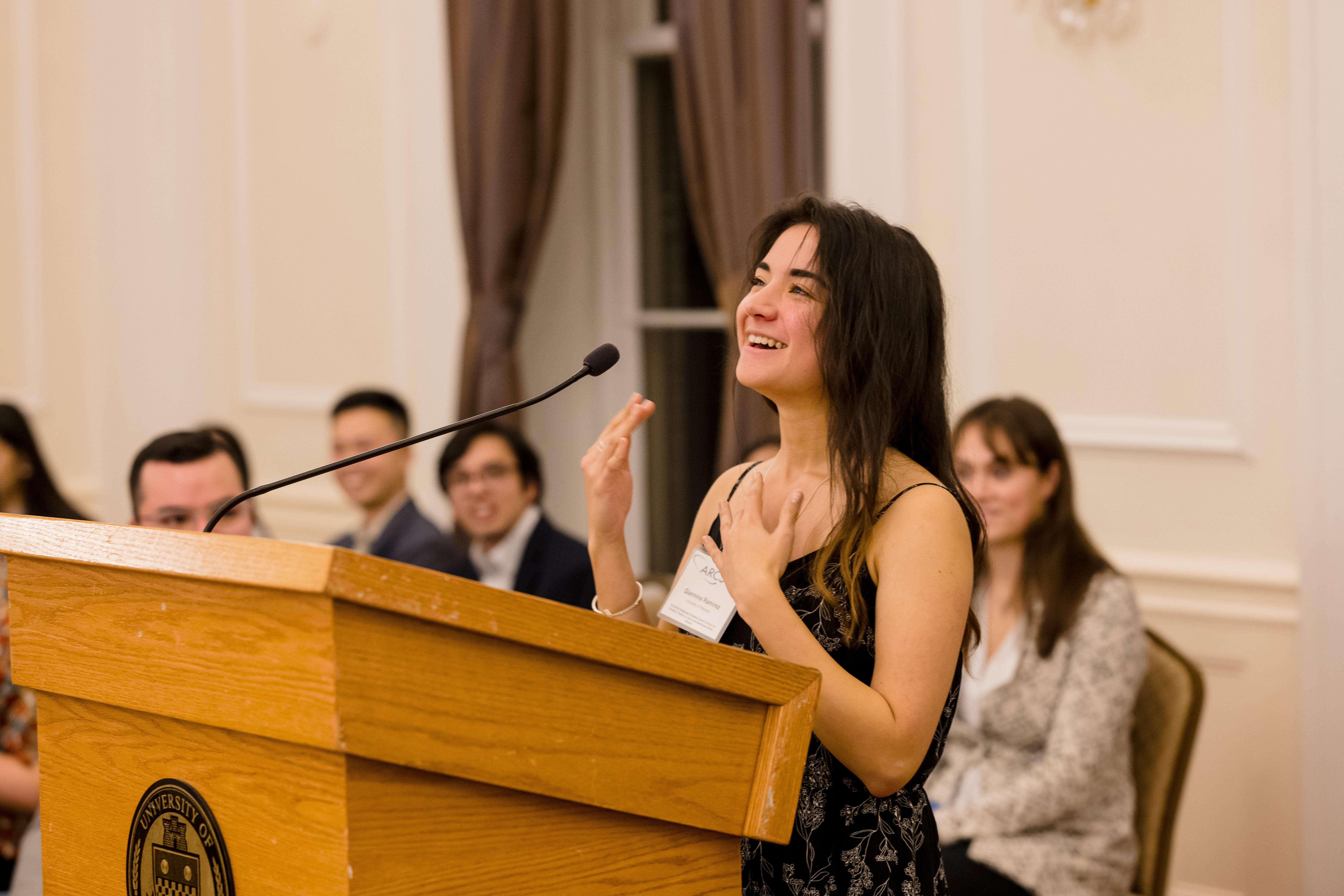 On October 30th, 2024 the University of Pittsburgh hosted the Pittsburgh Chapter for our annual donor appreciation event at the University Club. After time for members, scholars, guests, and university faculty and staff to snack on hors d’oeuvres while socializing, Co- President Anne Crawford began the evening’s program. Our featured speaker was Adam Leibovich, PhD, the University of Pittsburgh’s Bettye J. and Ralph E. Bailey Dean, Kenneth P. Dietrich School of Arts and Sciences, College of General Studies. As always, the highlight of the evening was hearing from our scholars. Third year scholars Sam Nance, Carnegie Mellon University, and Giannina Ramirez, University of Pittsburgh, described their research. Additionally, each scholar shared a fun fact about themselves. The last speaker was Beth Wainwright, national president of ARCS Foundation.